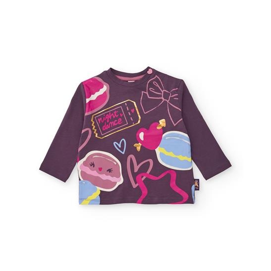 T-shirt manica lunga tinta unita con stampa a contrasto