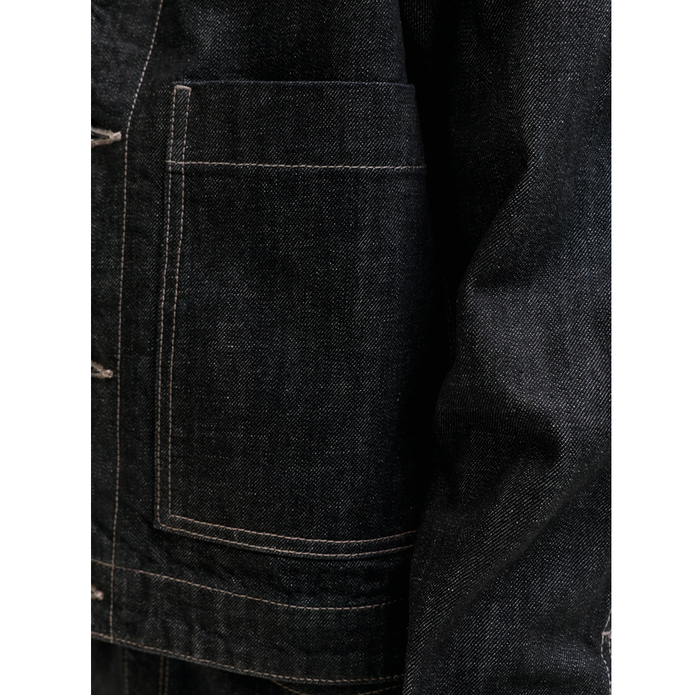 giubbino in denim scuro con maxi tasche anteriori e chiusura bottoni