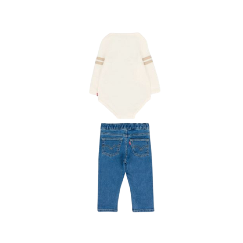 completo composto da body a manica lunga con stampa frontale logo a contrasto, jeans in coordinato
