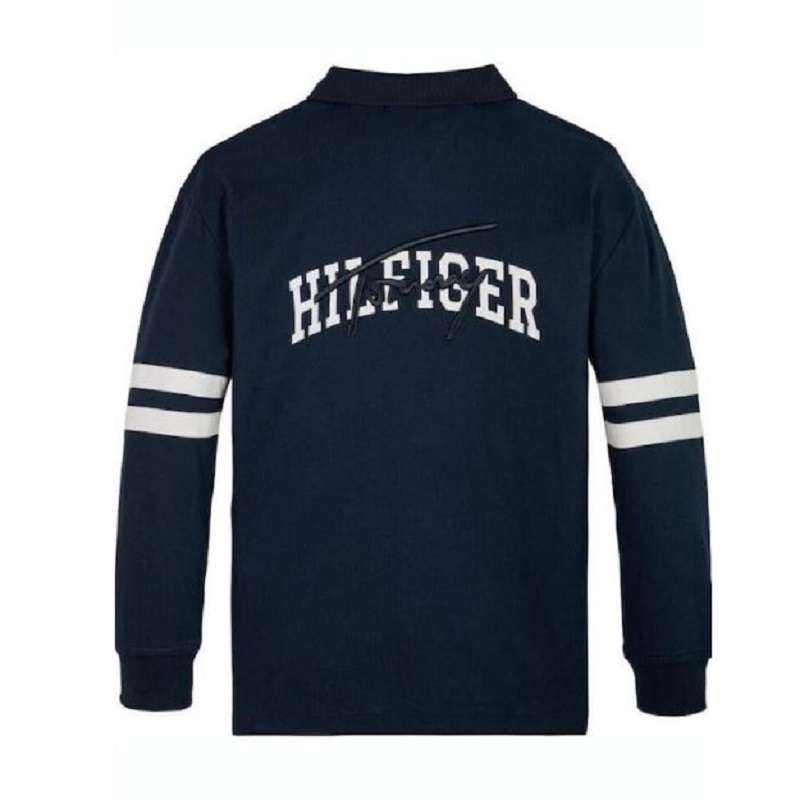 polo in tinta unita con bande a contrasto su maniche lunghe e dettaglio logo sul retro