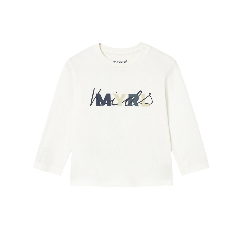t-shirt a manica lunga in tinta unita con stampa frontale logo a contrasto colore