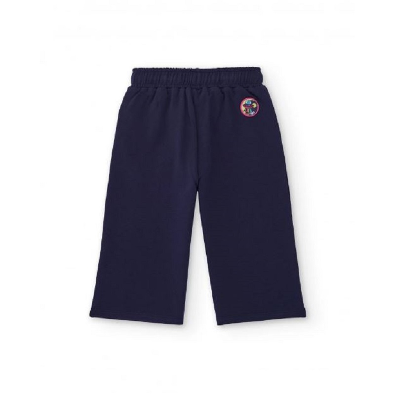 pantaloni in felpa garzata tinta unita, modello palazzo con elastico e coulisse in vita