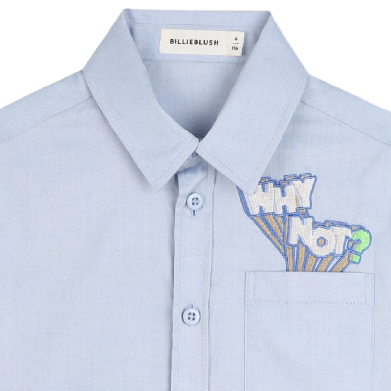 camicia manica lunga in tinta unita con taschino e ricamo a contrasto