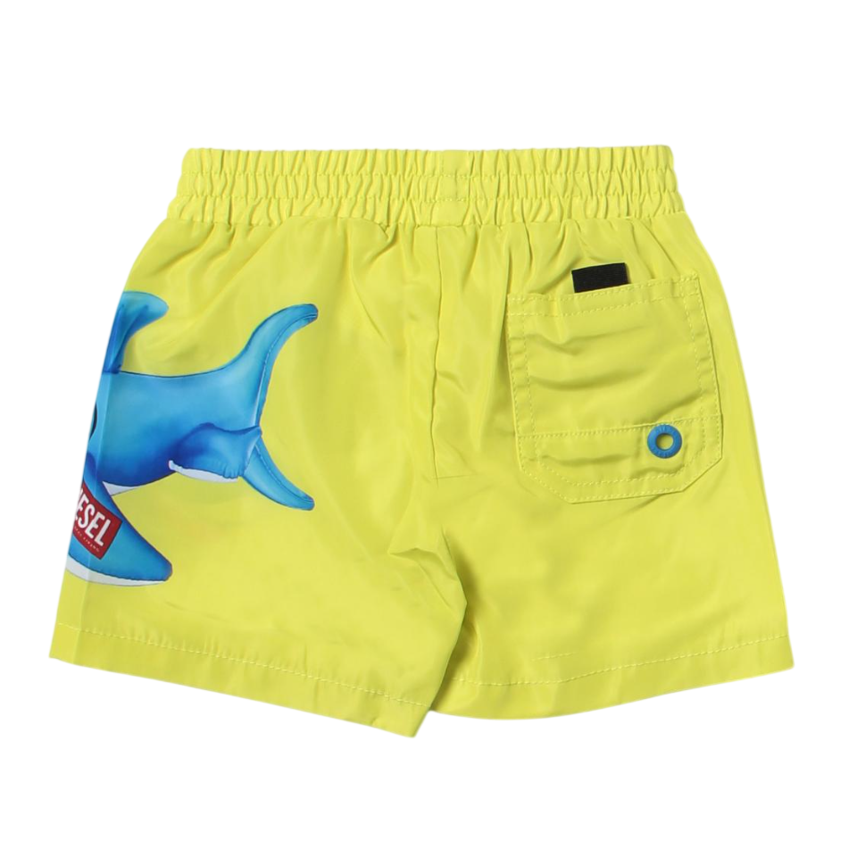 bermuda mare in tinta unita con elastico in vita e squalo laterale a contrasto