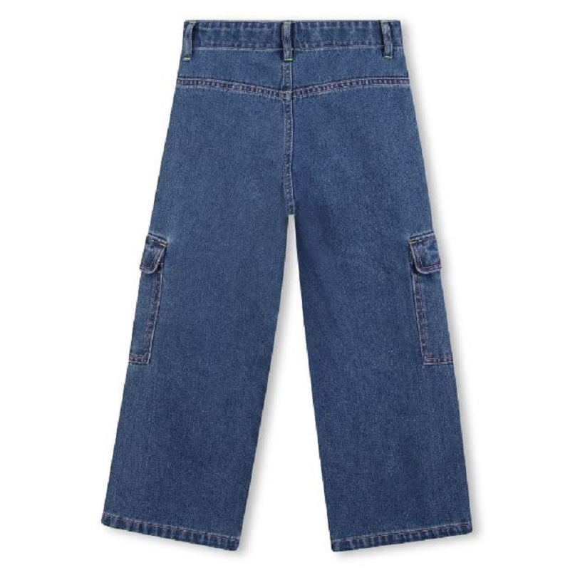 jeans cargo con impunture fluo e ricamo con dettaglio glitter