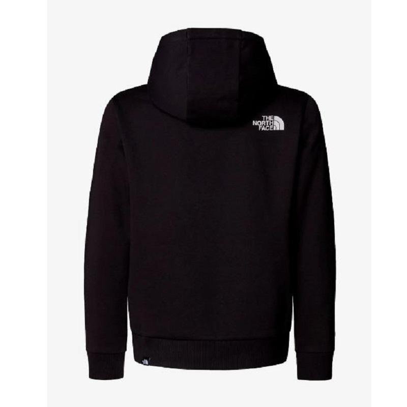 felpa in tinta unita con cappuccio e tasca marsupio su fondo, piccolo logo a contrasto fronte e retro