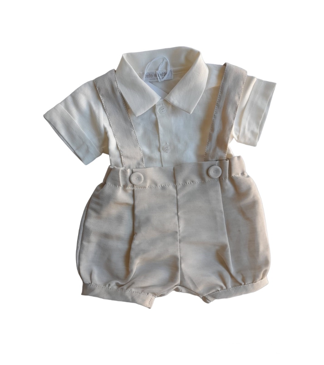 Completo 2 pz composto da camicia misto lino a body e con mezza manica, abbinata a salopette con pinces