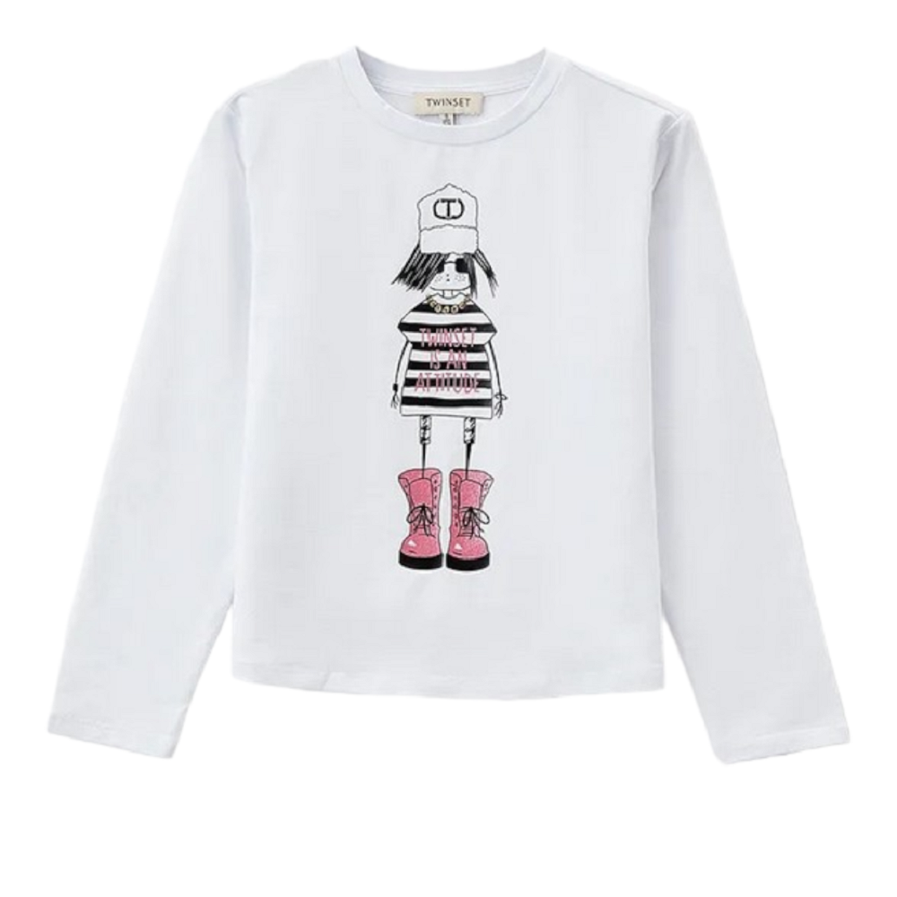 T-shirt manica lunga, girocollo, tinta unita con stampa frontale