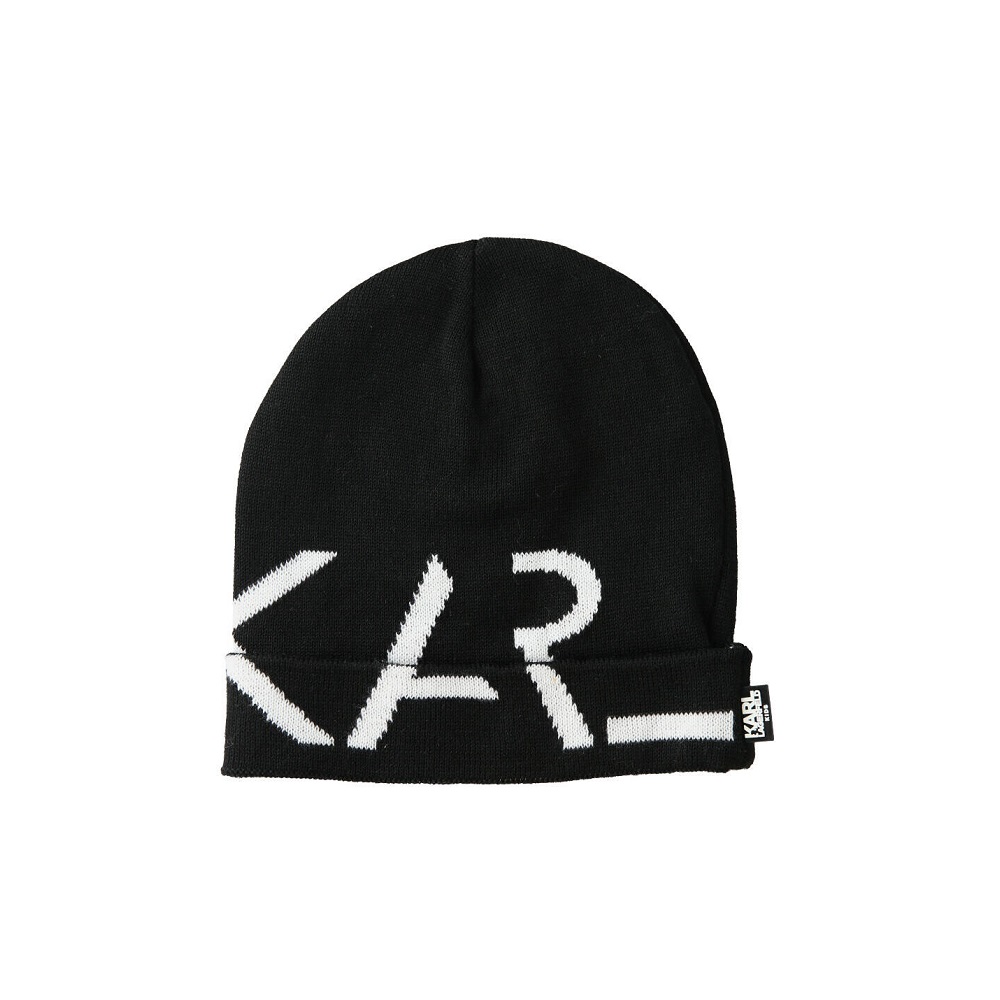 Berretto in maglia con risvolto e logo a contrasto
