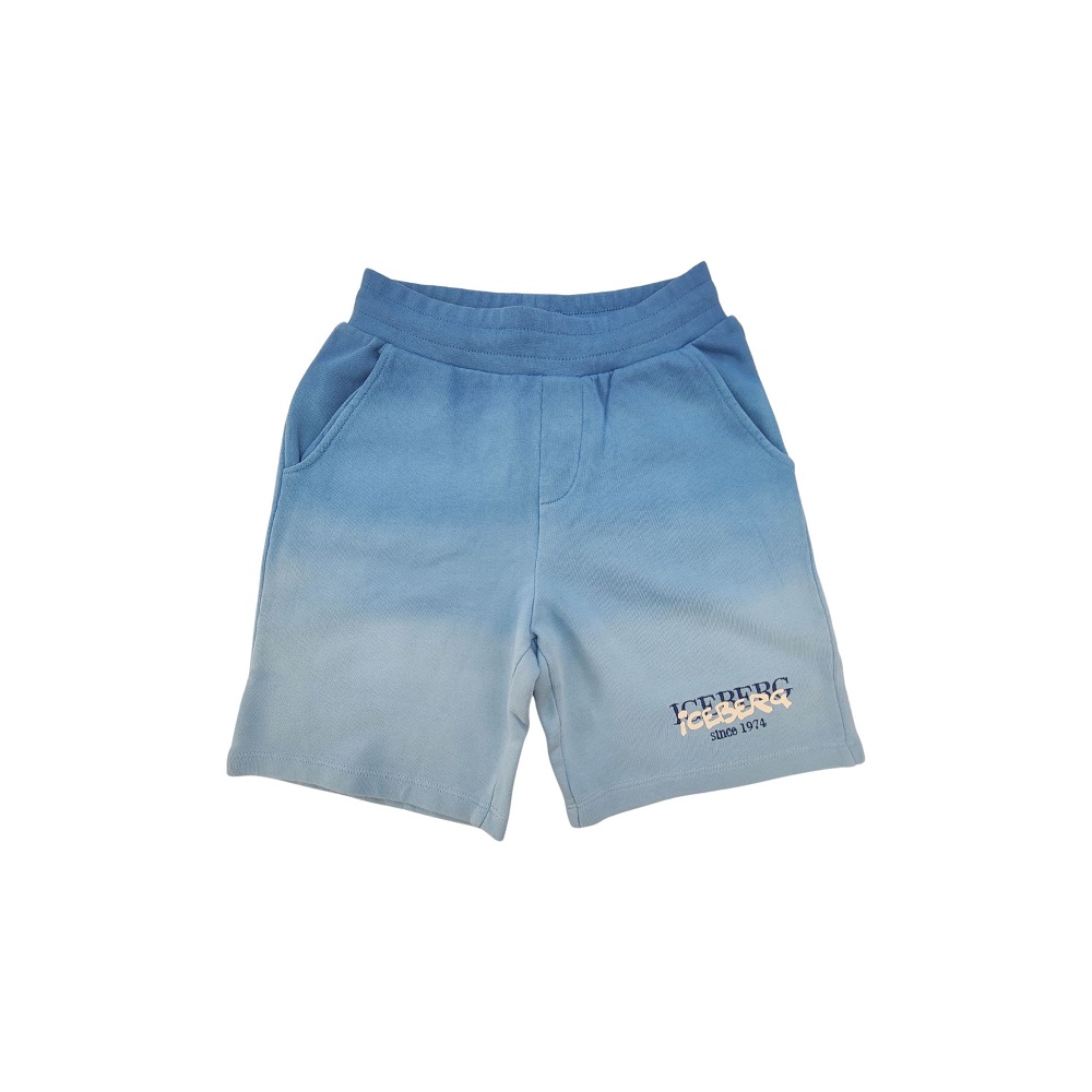 bermuda in felpa tinta unita sfumati su fondo e dettaglio logo a contrasto
