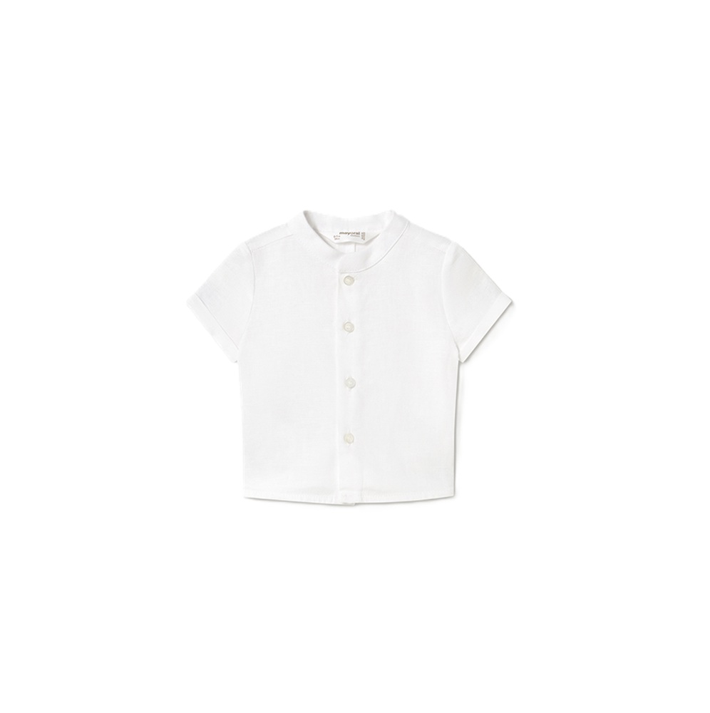Camicia a manica corta tinta unita in misto lino con pistagna