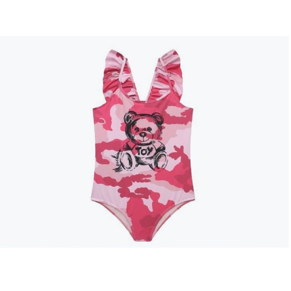 costume intero camouflage con volant lungo le spalline e logo a contrasto sul davanti