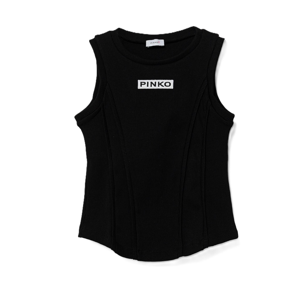 Canotta tinta unita a costine con ricamo logo anteriore a contrasto