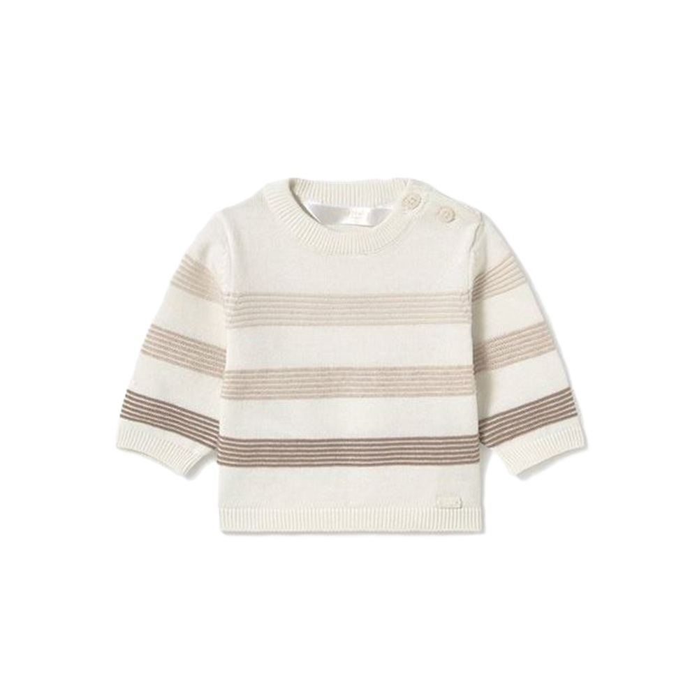pullover in cotone con scollo rotondo e fasce rigate in contrasto colore