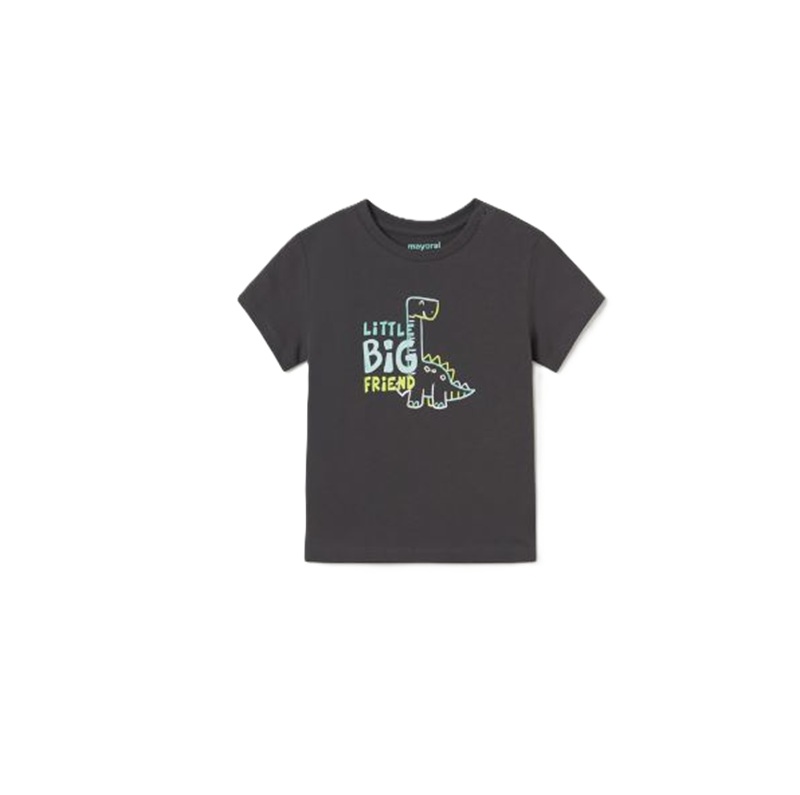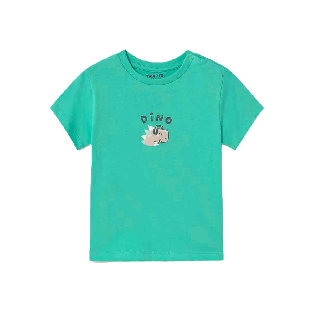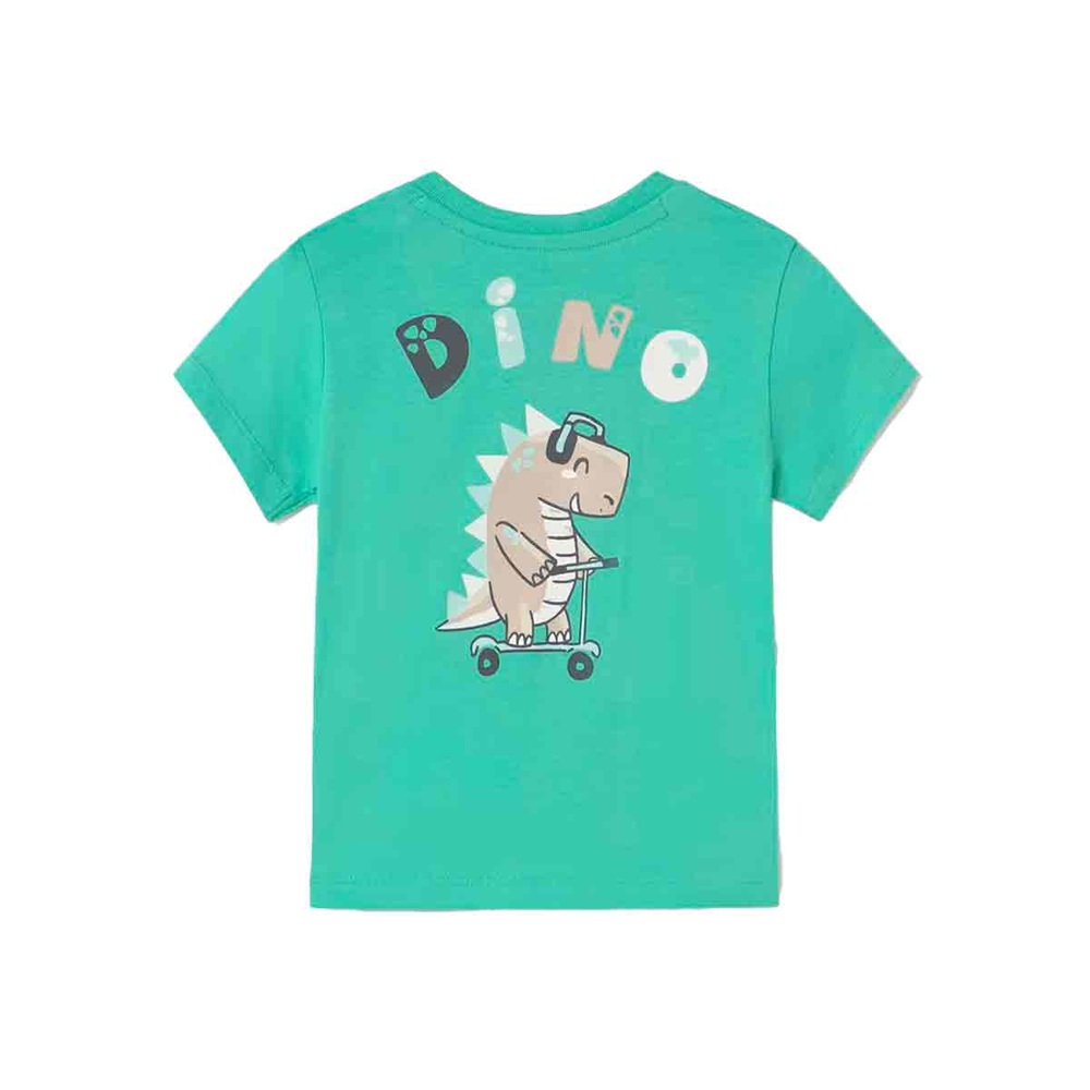 t-shirt a mezza manica in tinta unita con stampa dinosauro a contrasto colore frontale e sul retro