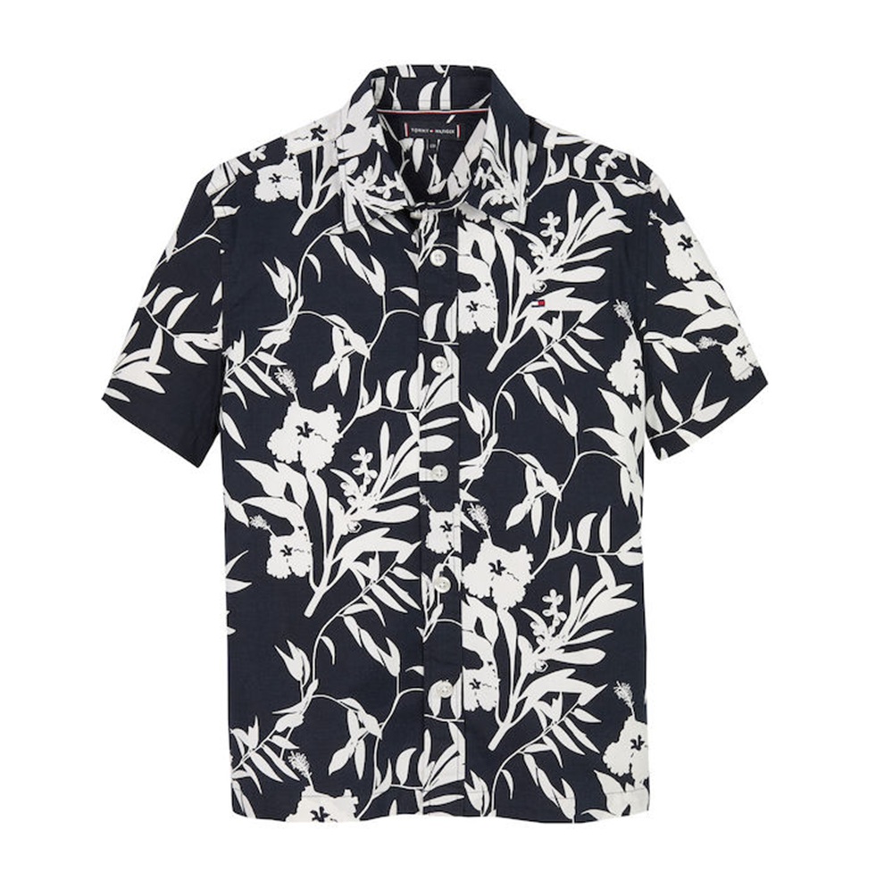 Camicia maniche corte con stampa floreale, ricamo logo anteriore