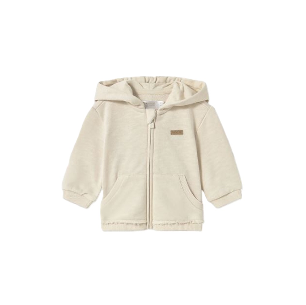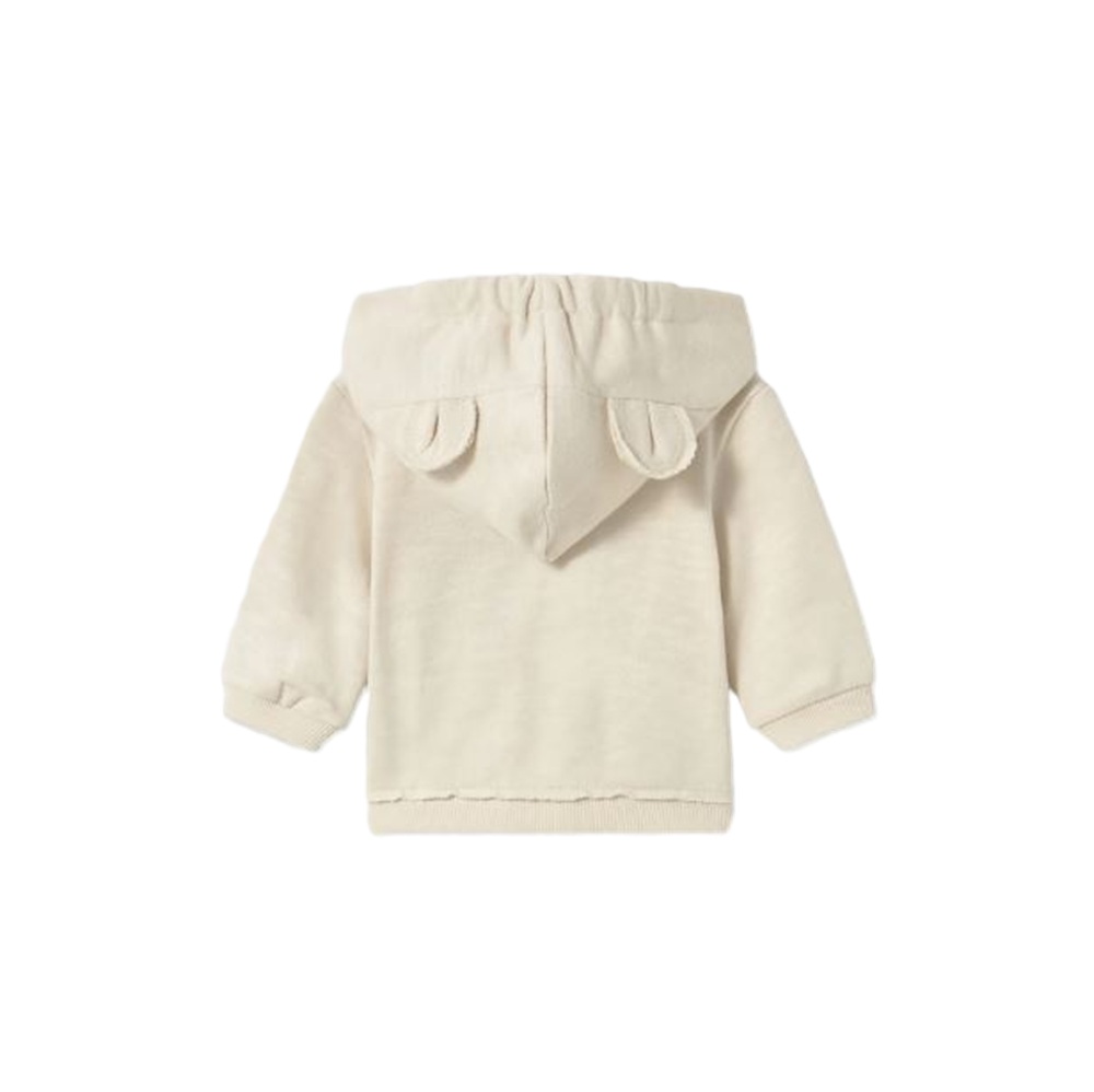 felpa in tinta unita con cappuccio dal dettaglio orecchie, chiusura zip e tasche su fondo