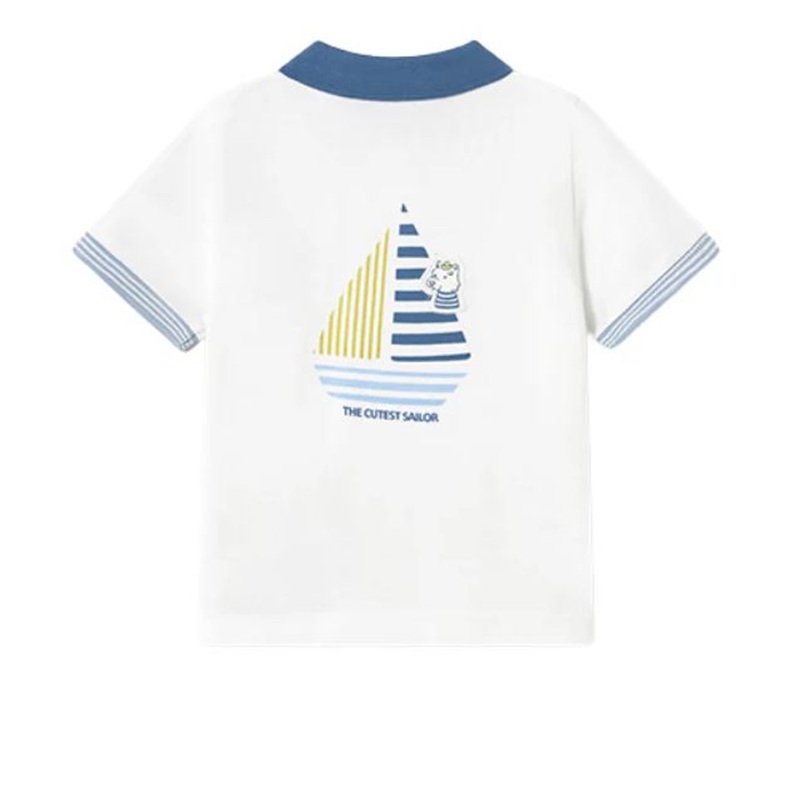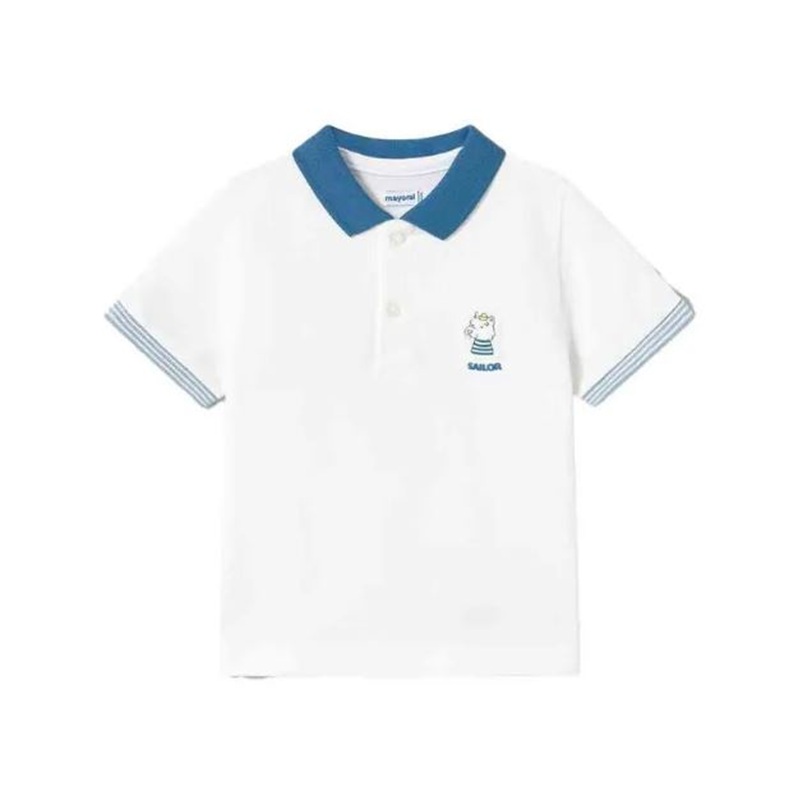 polo a manica corta in tinta unita con dettaglio tigrotto/cane in rilievo sul davanti e stampe sul retro