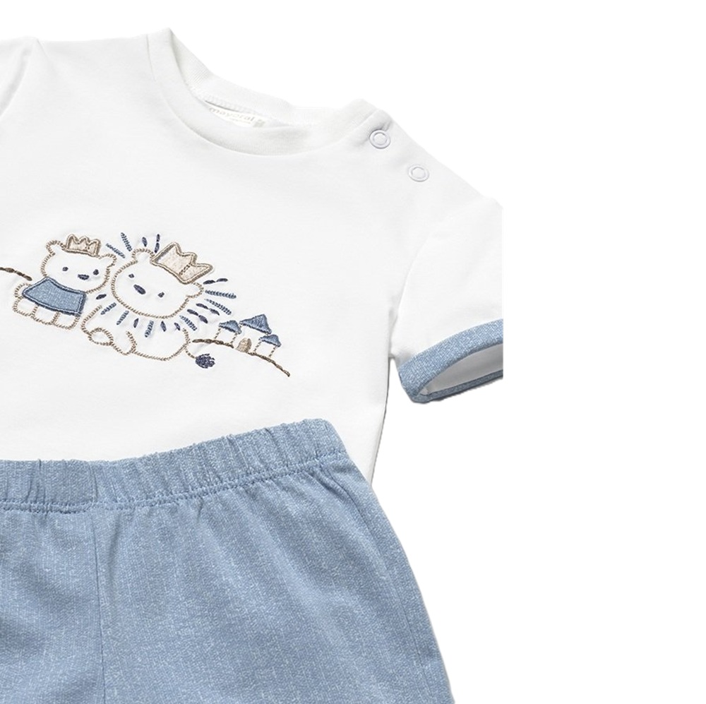 Completo 2 pezzi composto da: t-shirt manica corta con ricamo orsetti anteriore a contrasto e pantaloncini in coordinato