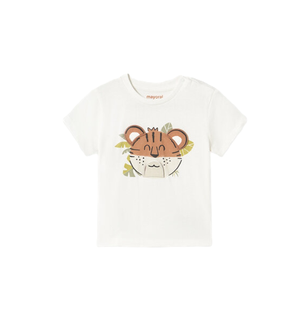 T-shirt manica corta tinta unita con stampa tigre anteriore a contrasto