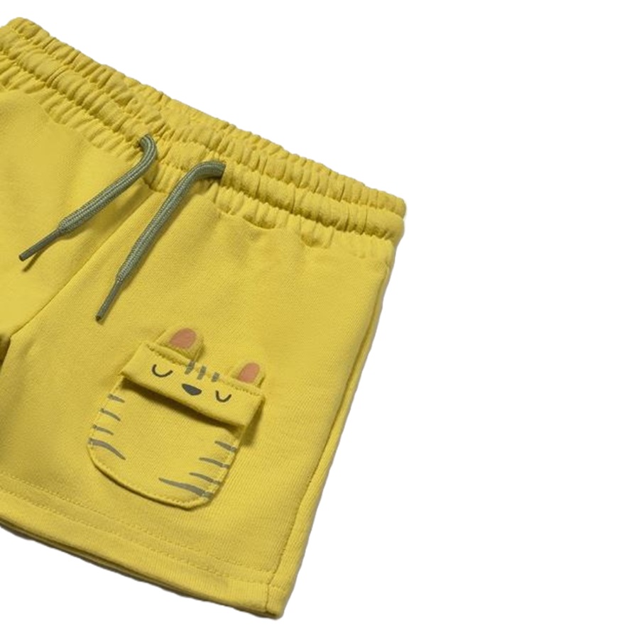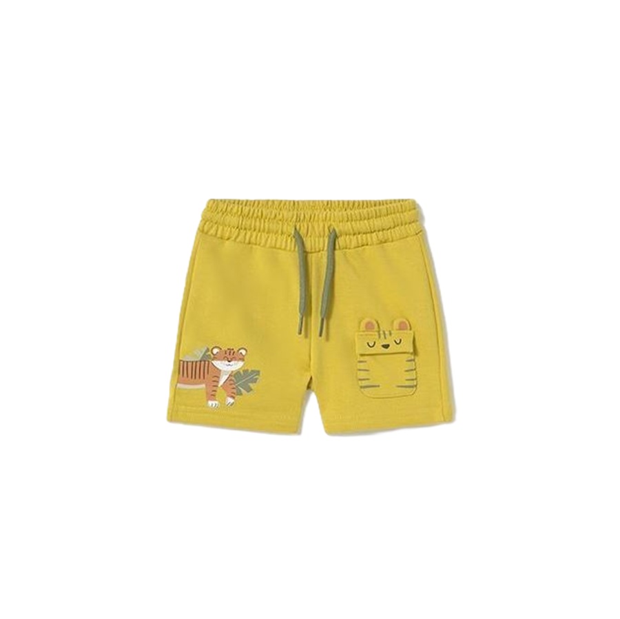 bermuda in felpa garzata con stampa jungla/ dinosauro e taschino, coulisse ed elastico in vita