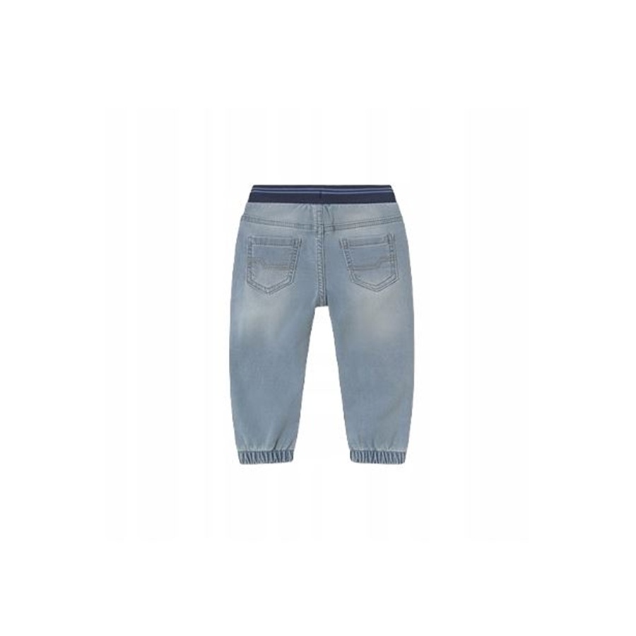 jeans jogger dal lavaggio chiaro con elastico a coste in vita ,tasche sul davanti e sul retro