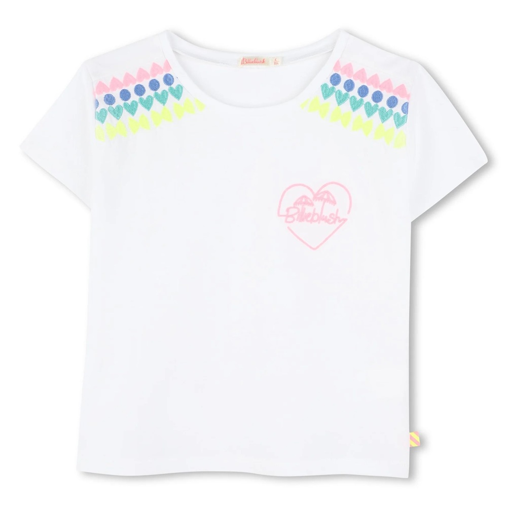 T-shirt manica corta tinta unita con ricami anteriori a contrasto
