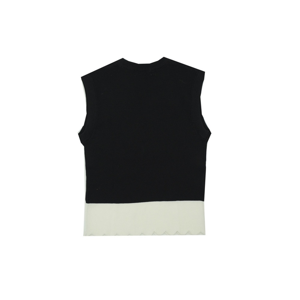 Canotta a costine tinta unita con fondo a contrasto e profilo ad onde