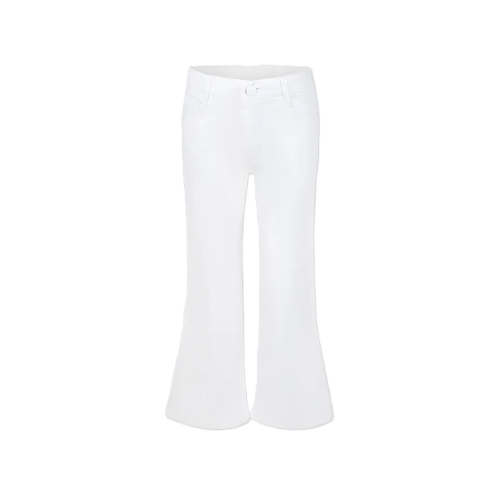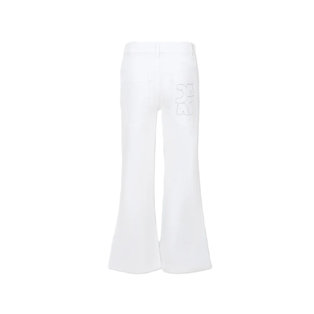 Pantaloni tinta unita a zampa modello cinque tasche con ricamo logo posteriore