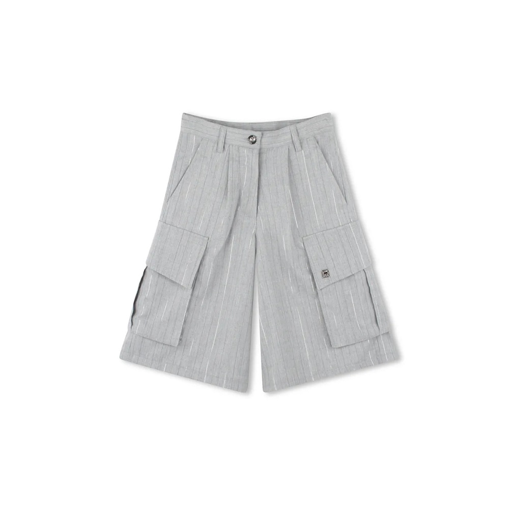 Bermuda a righe taglio dritto tinta unita con filo metallico decorativo, tasche anteriori, vita regolare e chiusura con zip e bottone
