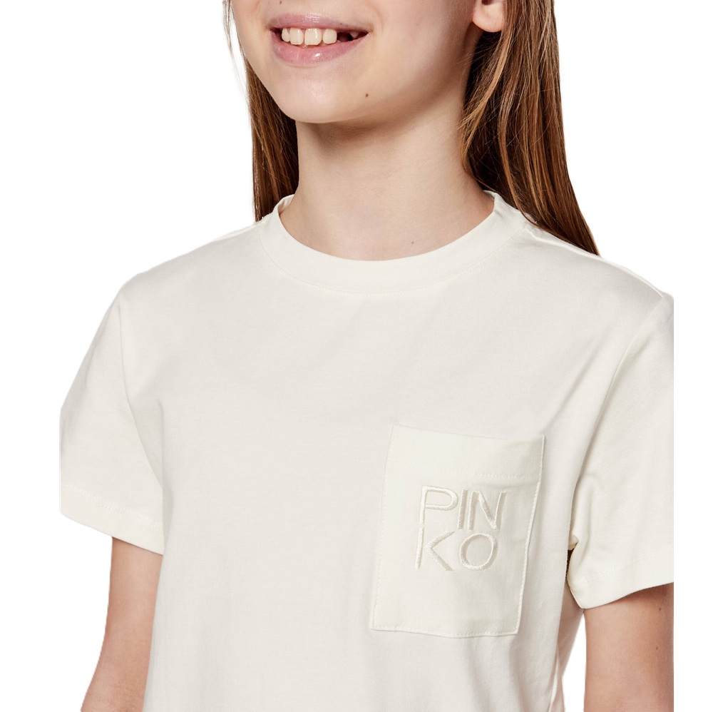 T-shirt manica corta tinta unita con taschino e ricamo logo tono su tono