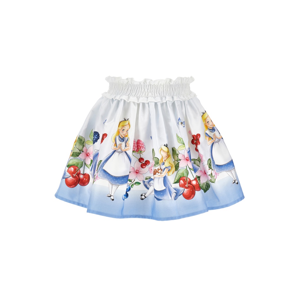 Gonna in rasatello con stampa "Alice Nel Paese delle Meraviglie" e vita elasticizzata