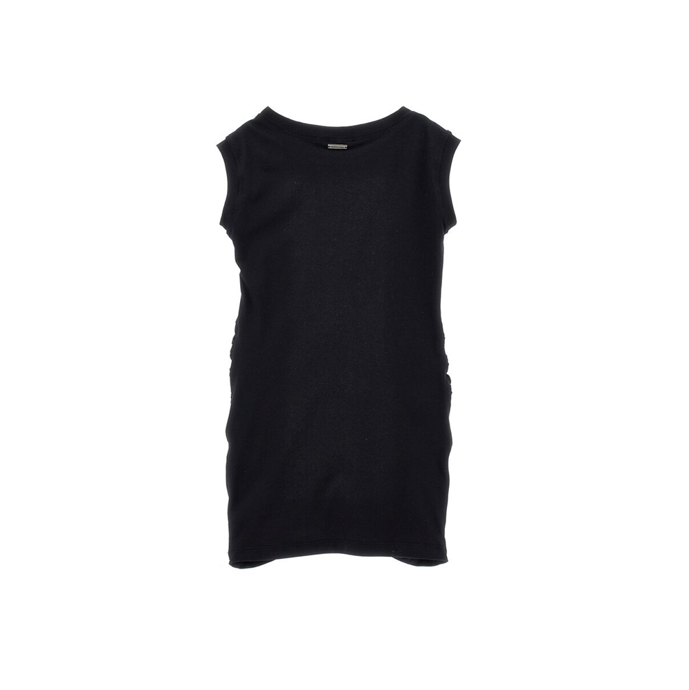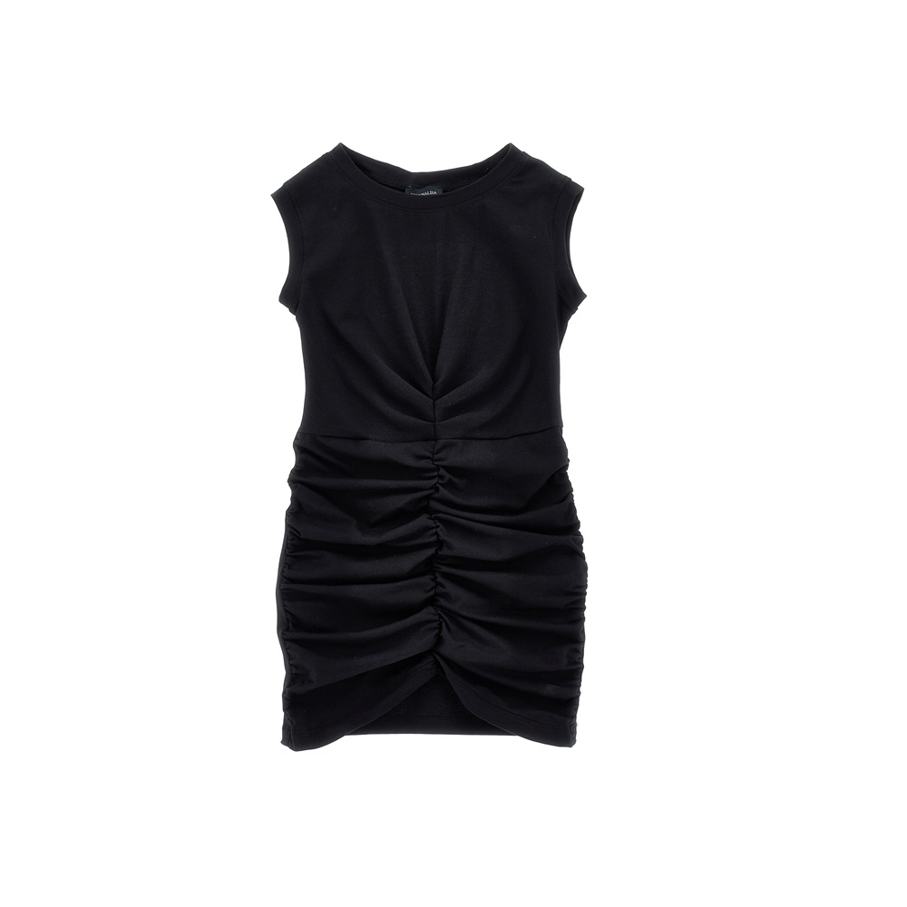 Abito tinta unita smanicato con drappeggio centrale