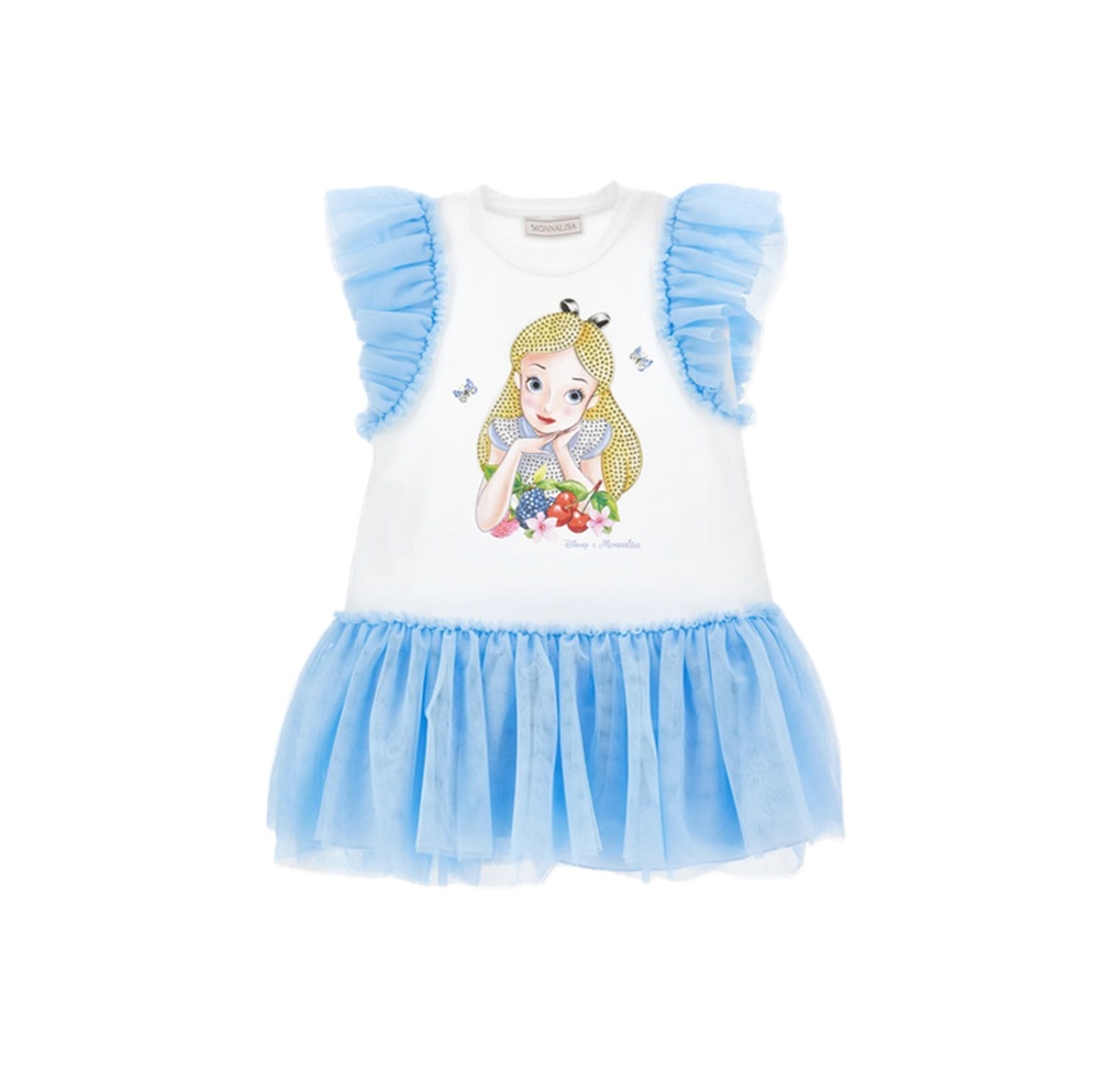 Vestito con maniche e fondo in tulle, stampa Alice anteriore