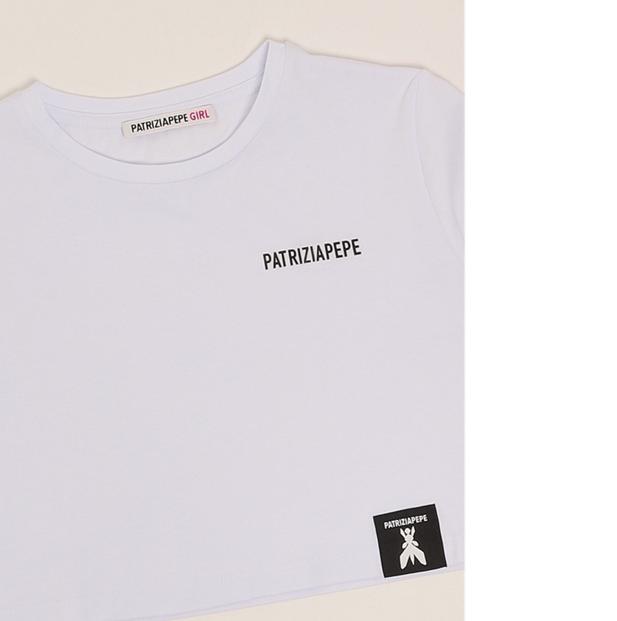 T-shirt manica corta tinta unita, modello crop con stampa logo anteriore a contrasto