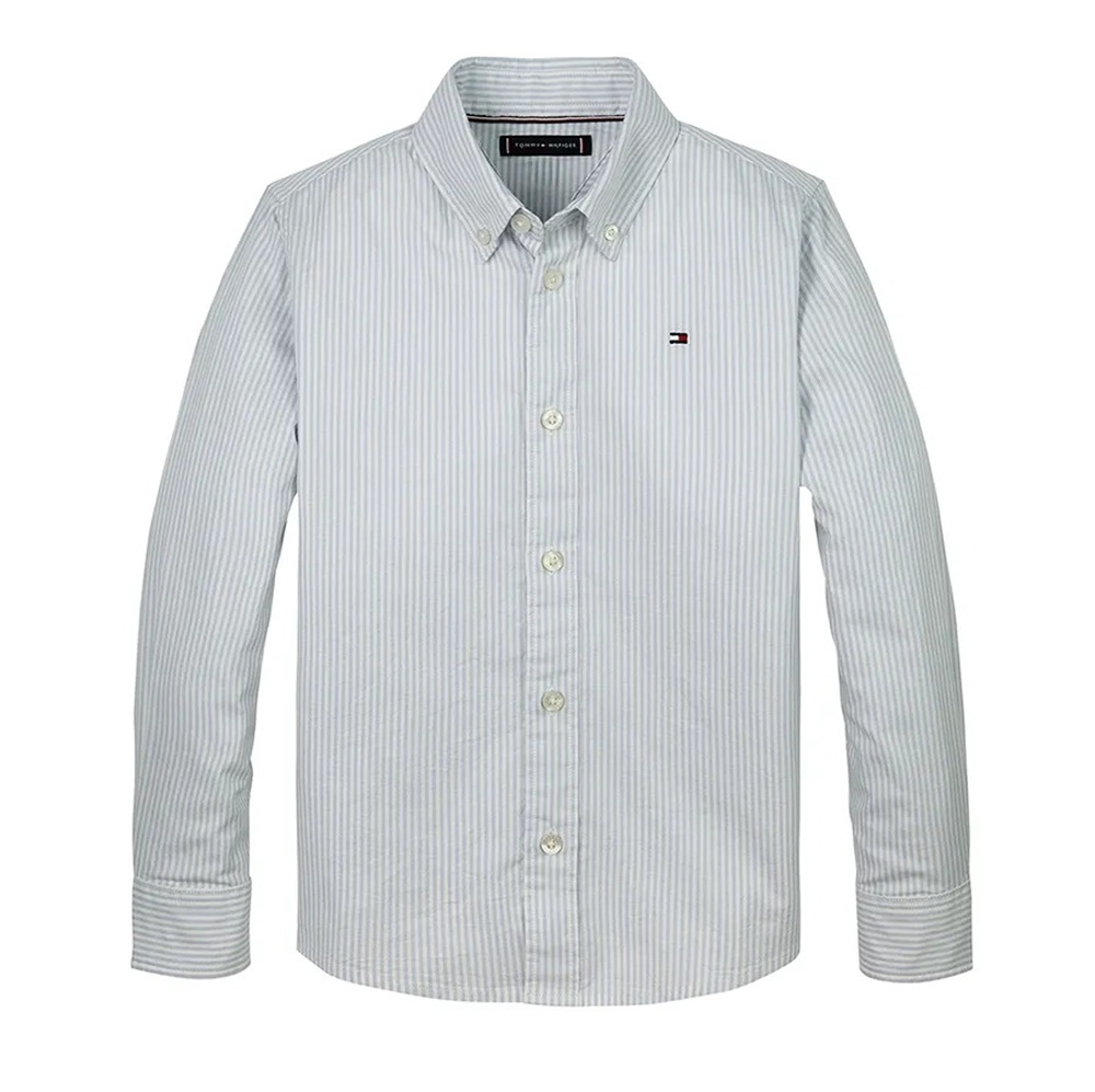 Camicia a righe maniche lunghe con ricamo logo anteriore