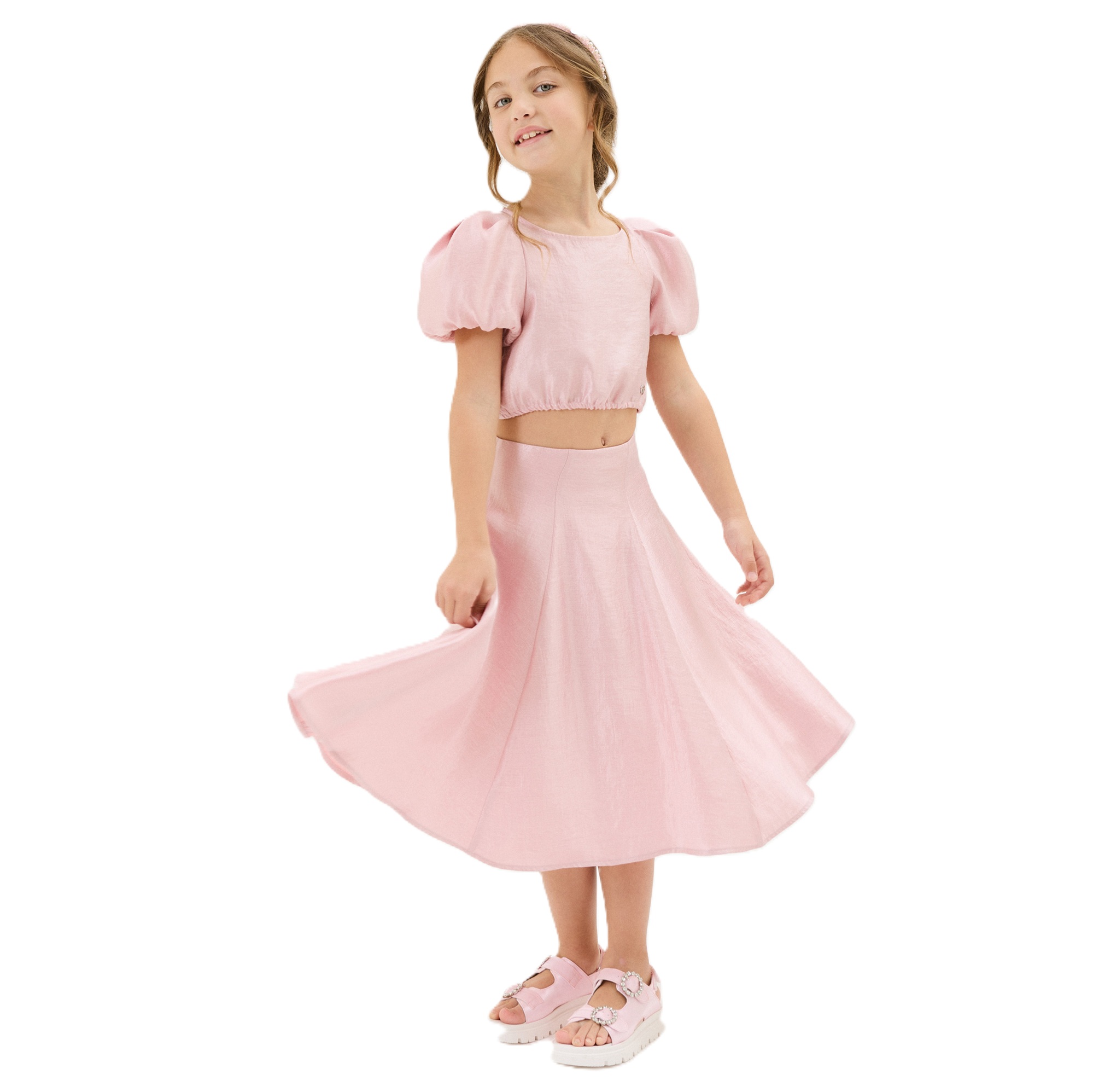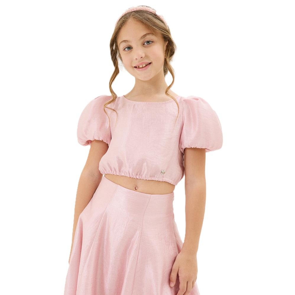 Top tinta unita con maniche a farfalla, fondo elasticizzato, chiusura posteriore a goccia con bottone