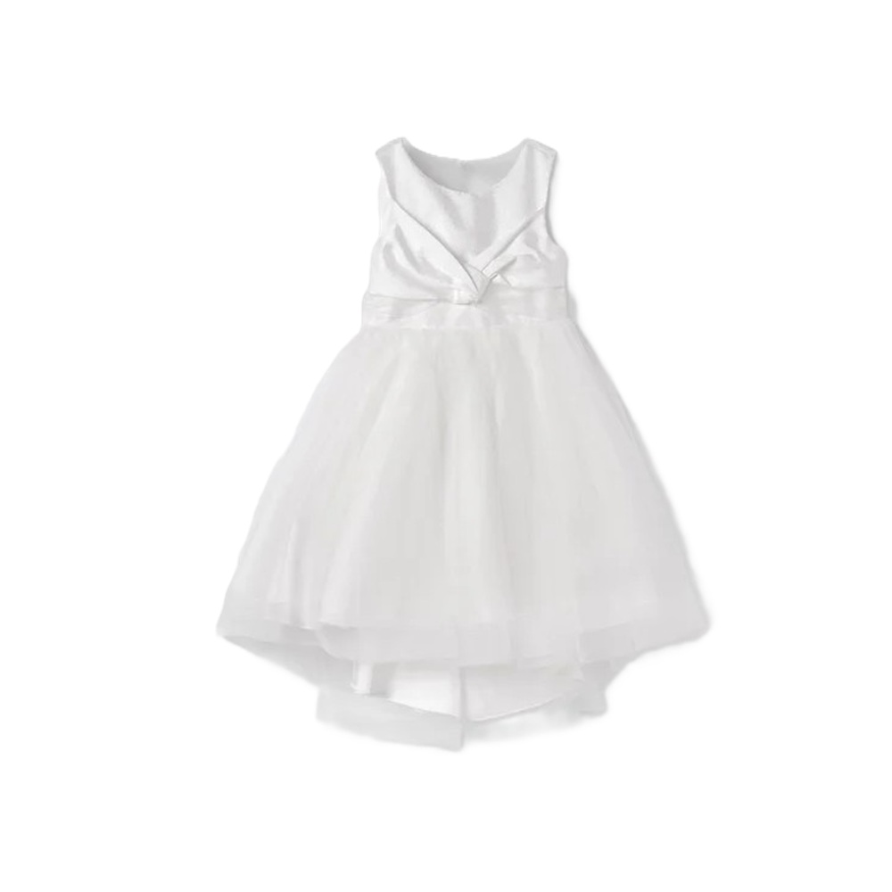 Abito in tulle smanicato con drappeggio anteriore e fiocco posteriore