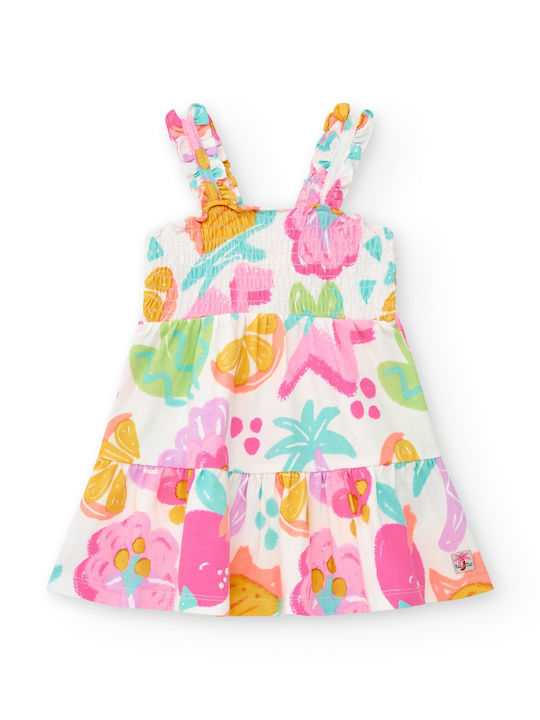 Vestito a fantasia con bretelline rouges e parte superiore elasticizzata