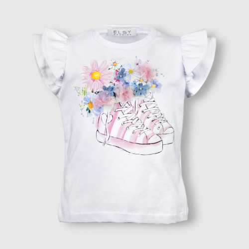 T-shirt manica corta tinta unita con stampa scarpa e dettagli tulle