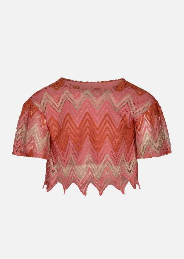 Completo traforato multicolore composto da: blusa manica corta con profilo ad onde e short con vita elasticizzata