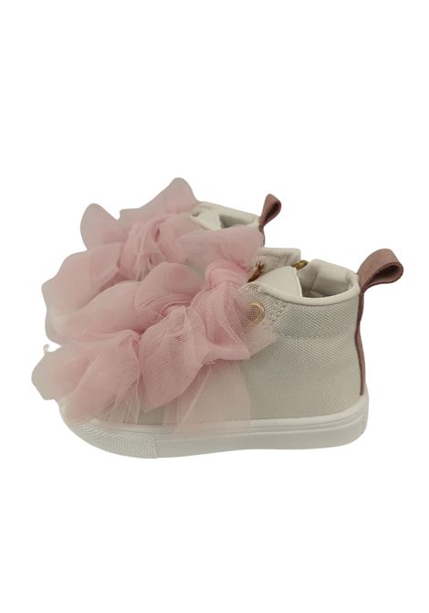 Snerakers in tela tinta unita con stringhe in tulle a contrasto e chiusura laterale con zip