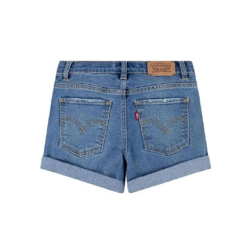shorts in jeans con cinque tasche, coulisse interna in vita e risvolto su fondo
