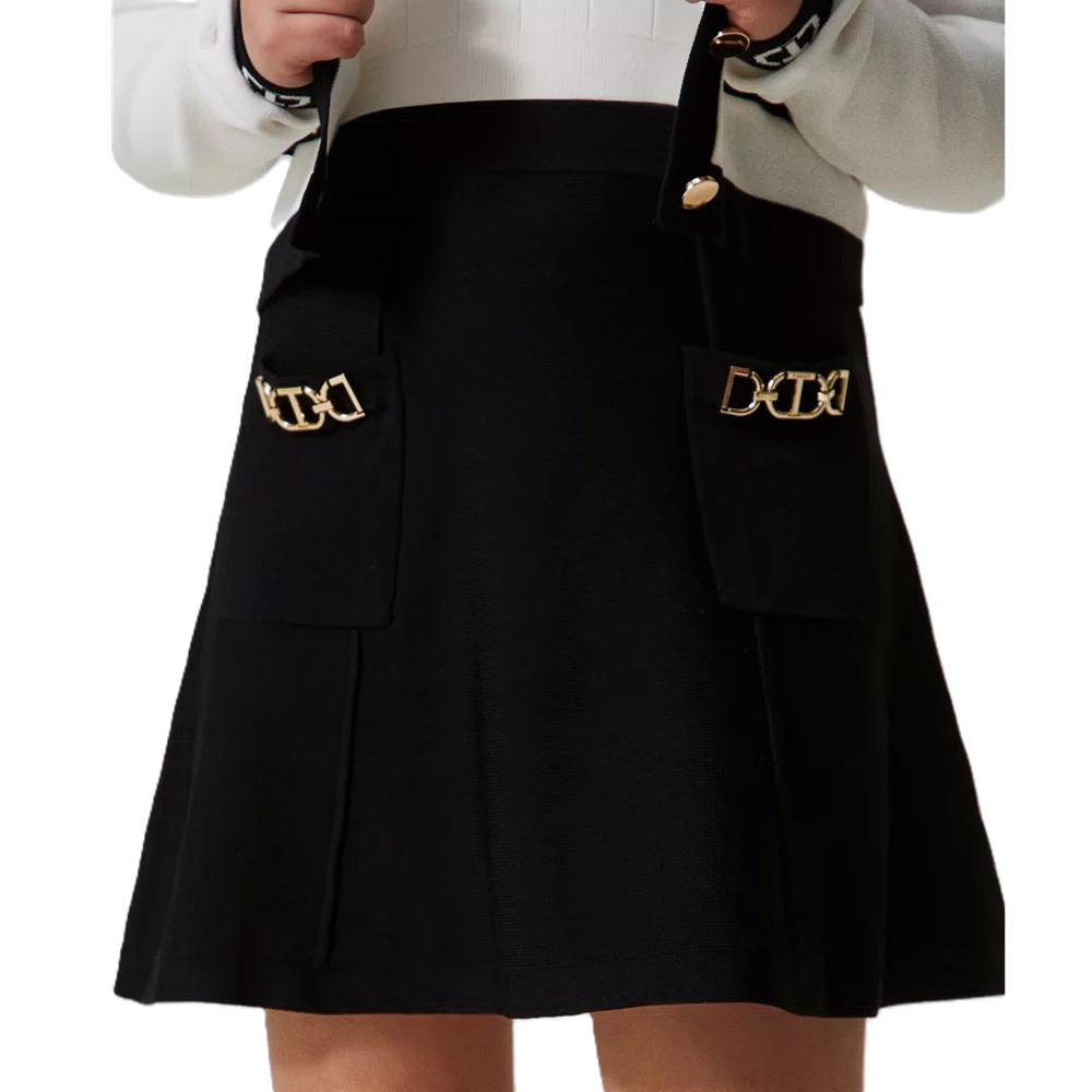 Minigonna in maglia con pieghe, tasche, chiusura in metallo Oval T, leggermente svasata.