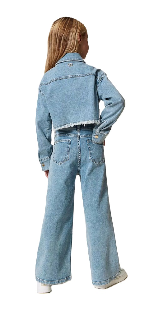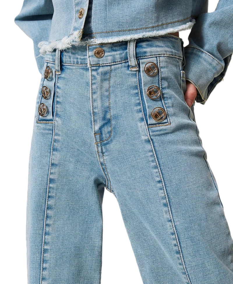 Jeans con bottoni Oval T décor, chiusura con zip e bottone, tagli verticali effetto piega stirata e linea wide leg