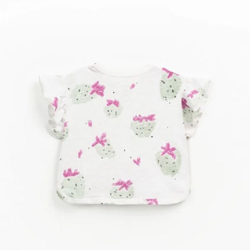 t-shirt a fantasia fragole con mezze maniche volant