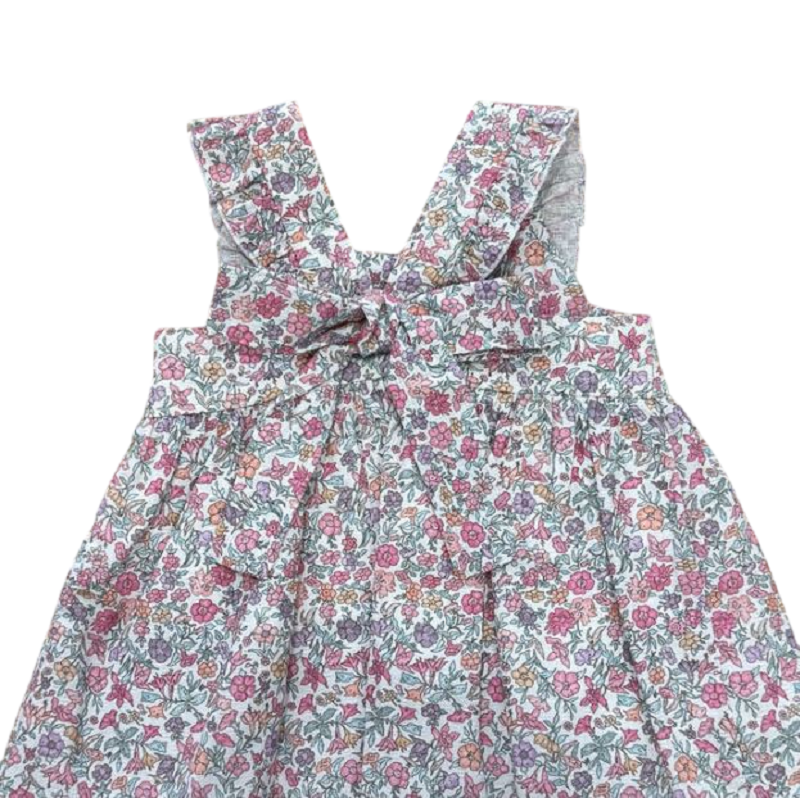 vetito svasato a fantasia fiori con spalline volant e fiocco sul retro