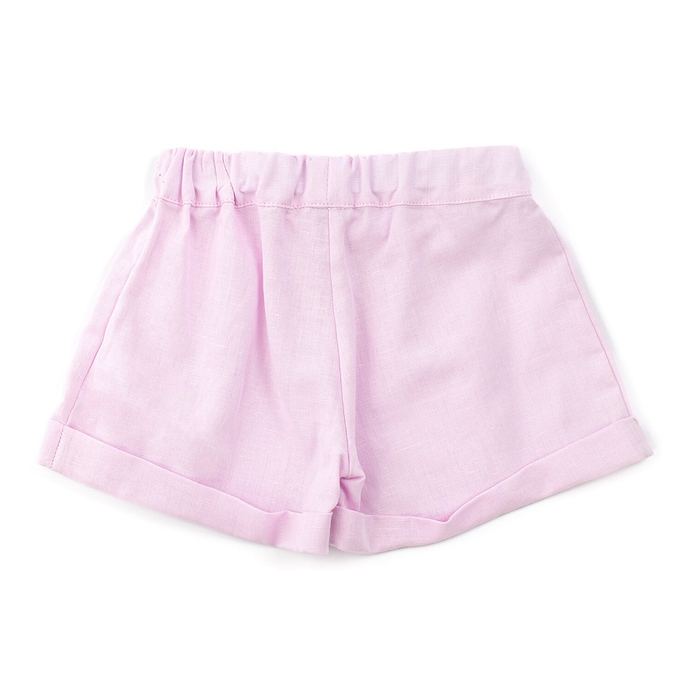 shorts in misto lino tinta unita con pinces, fiocchetto in vita e risvolto su fondo