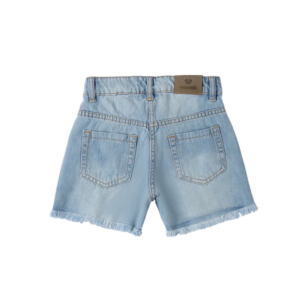shorts in jeans con cinque tasche, strappi sul davanti e couliss e interna in vita