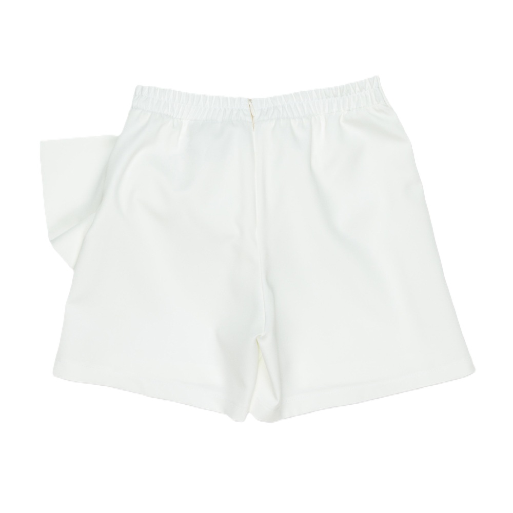 Shorts simil gonna in tinta unita con applicazione maxi fiocco anteriore